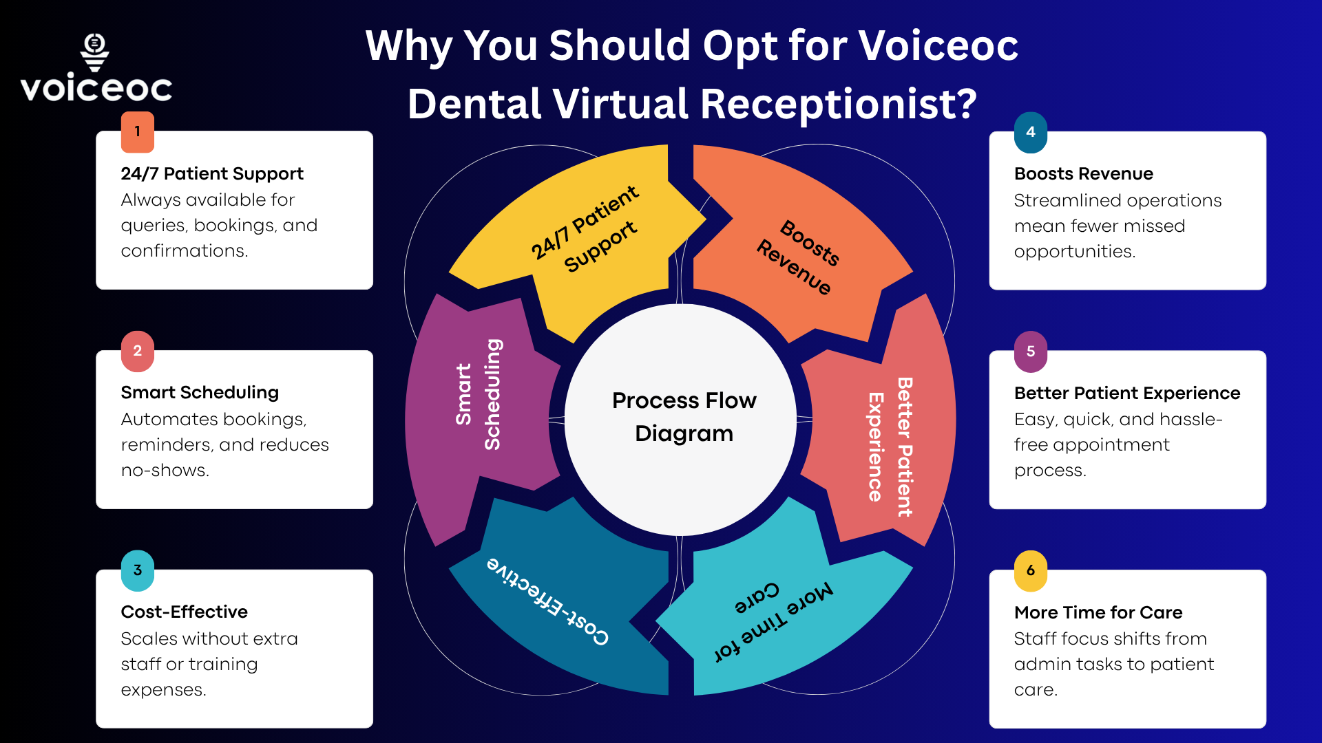 A dental virtual receptionist is not just a luxury but a smart investment for any modern dental practice. By automating repetitive tasks and ensuring round-the-clock availability, it can transform the way your clinic or hospital interacts with patients. Here are five key benefits: